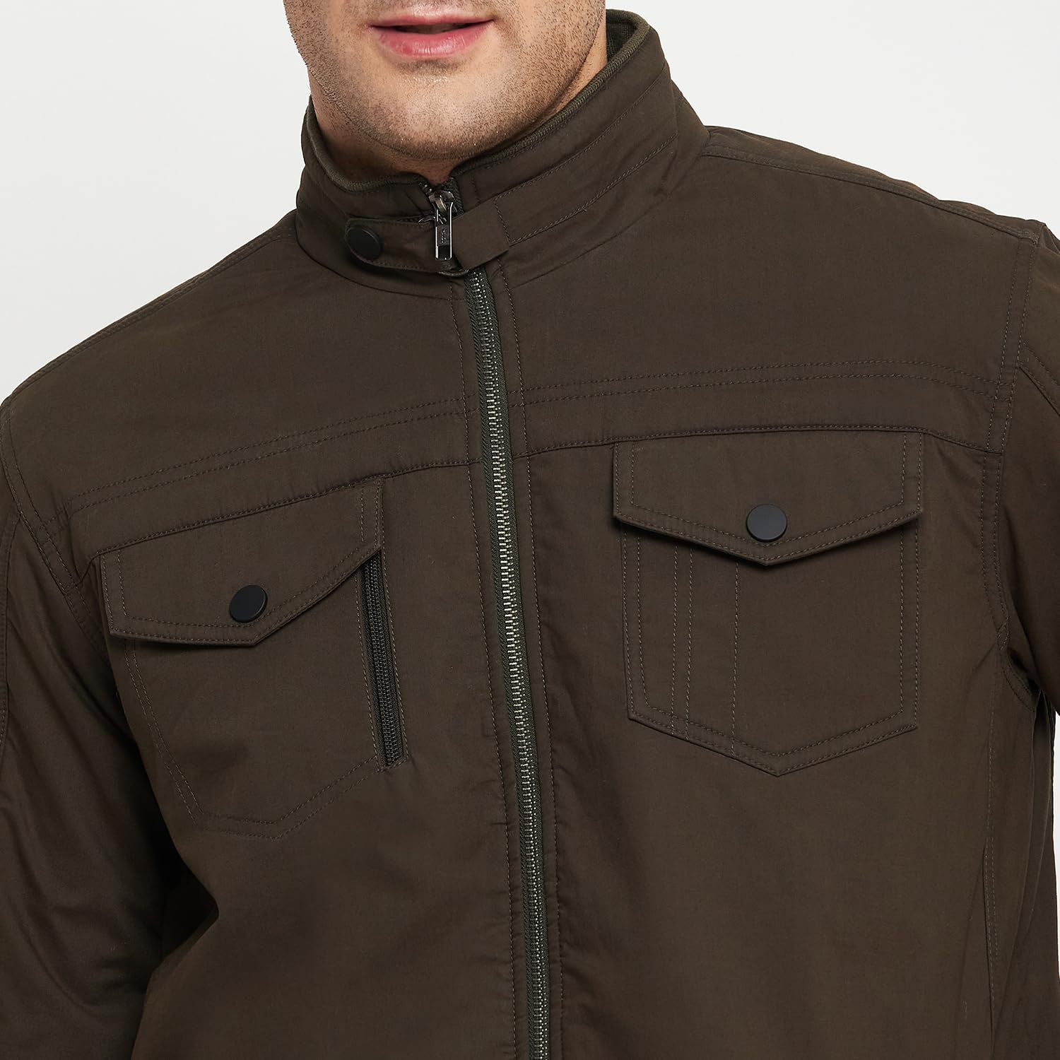 CANTABIL Fashion is a new and fascinating fashion brand that provides you the latest men’s and women’s fashion trends. In our products, we encourage to express the perfect combination of elegance and comfort. In today’s fast-paced world, we strive to differentiate and innovate our product line in order to appeal to the trend-setting generation. We are constantly aiming to offer fresh styles and bring value to India’s fashion aware wardrobes, keeping our customers’ satisfaction as our top goal. Choose from our trendy selection of Jeans, T-Shirts, Shirts, Trousers, Chinos, Sweatshirts, Jackets, and more, and you’ll be sure to smile, look good, and feel good. Cantabil Men Olive Solid casual jacket is a must-have for any man’s wardrobe. This casual jacket for men is crafted from cotton fabric, it ensures a comfortable and stylish fit. It features a collared neck, zip closure, 4 pockets and full sleeves. Ideal for every ocassion, this jacket is the best addition to your winter wardrobe. Pair this casual jacket with denim and sneakers for a dapper look.