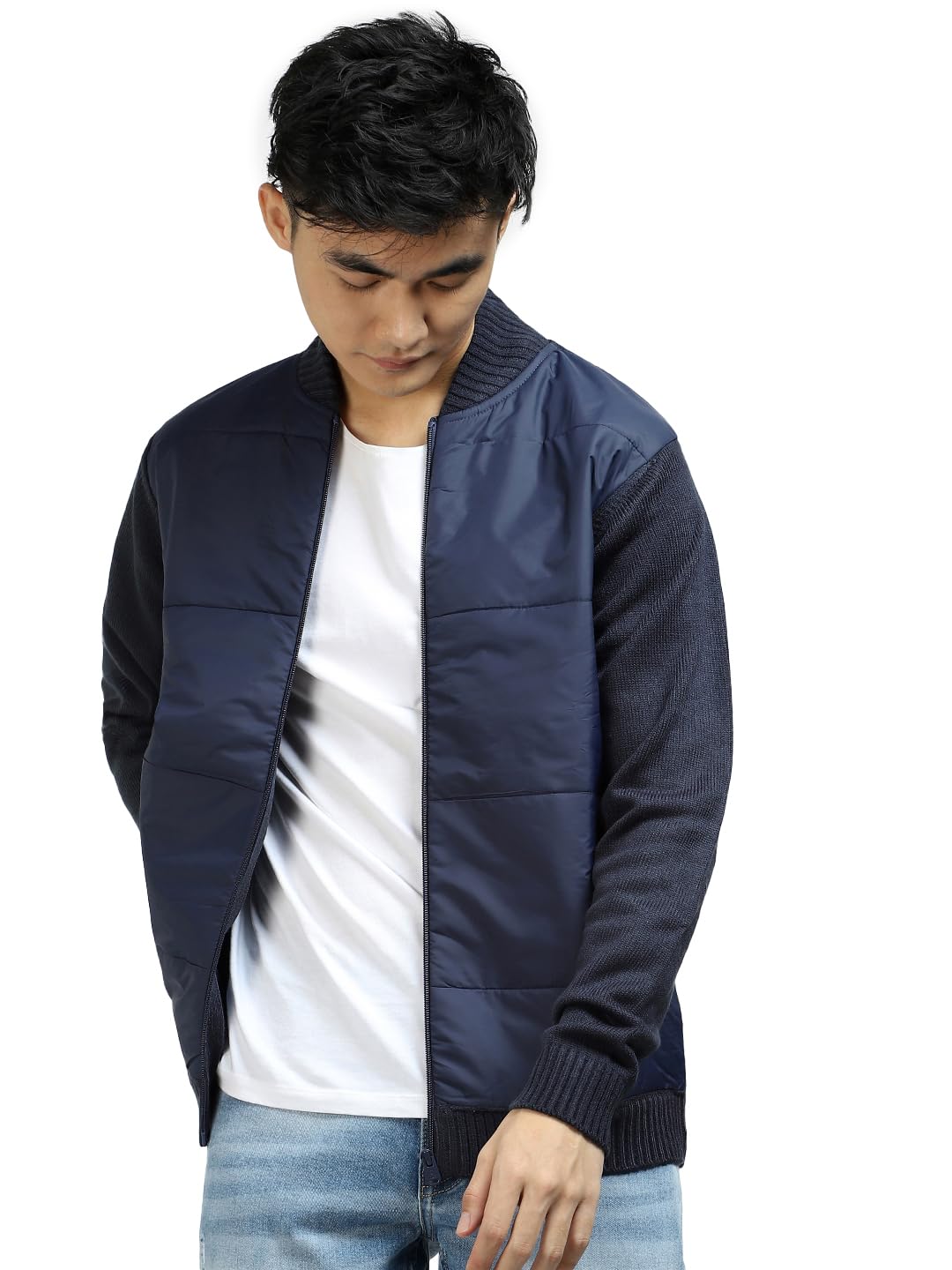 Jack & Jones Men Solid 100% Cotton Regular Fit Dark Blue Jacket