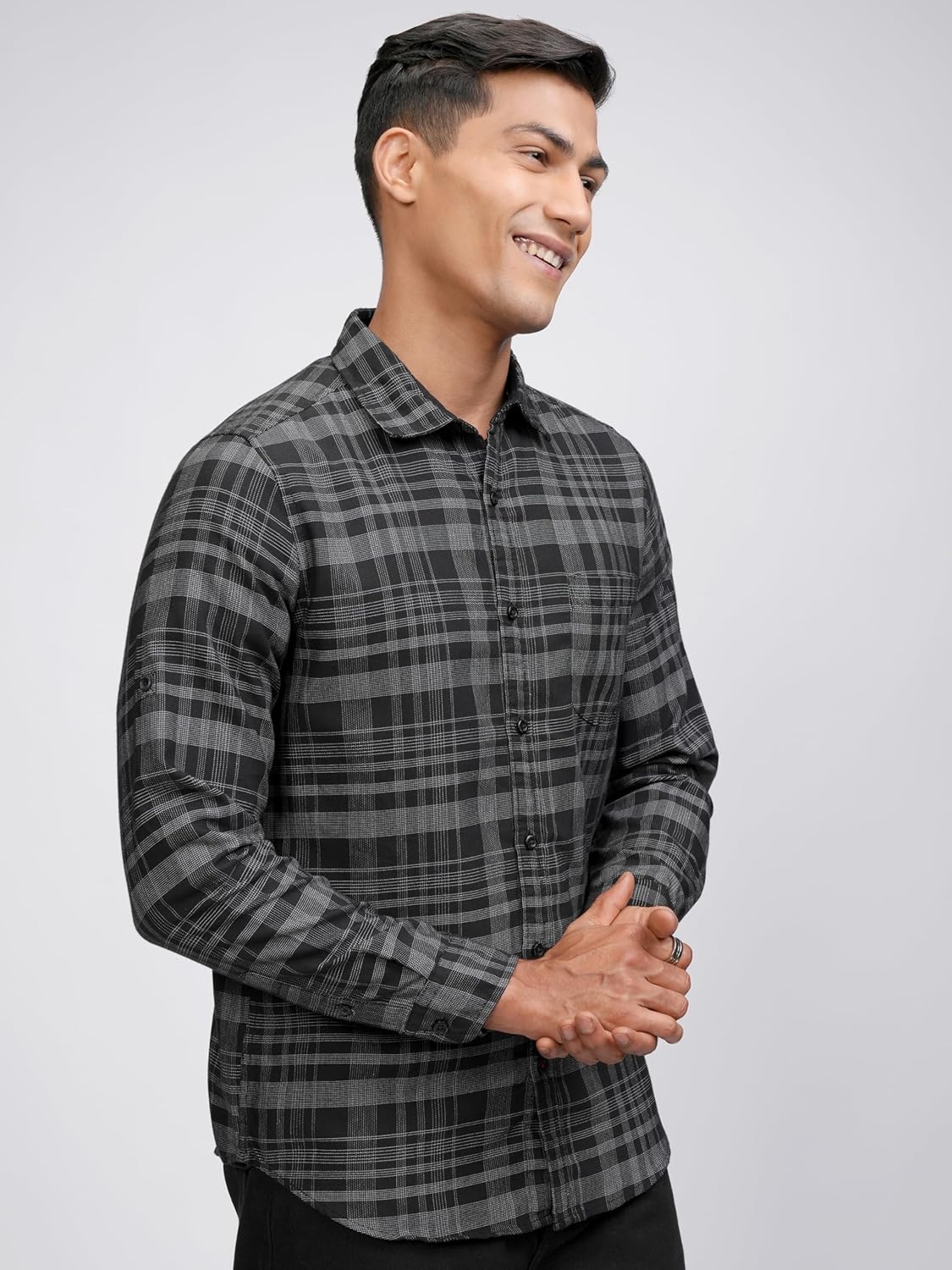 Locomotive Men Black & Grey Slim Fit Checked Casual Shirt