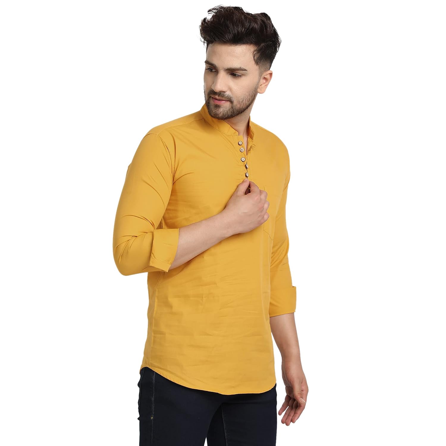 Majestic Man Cotton Solid Casual Short Kurta for Men