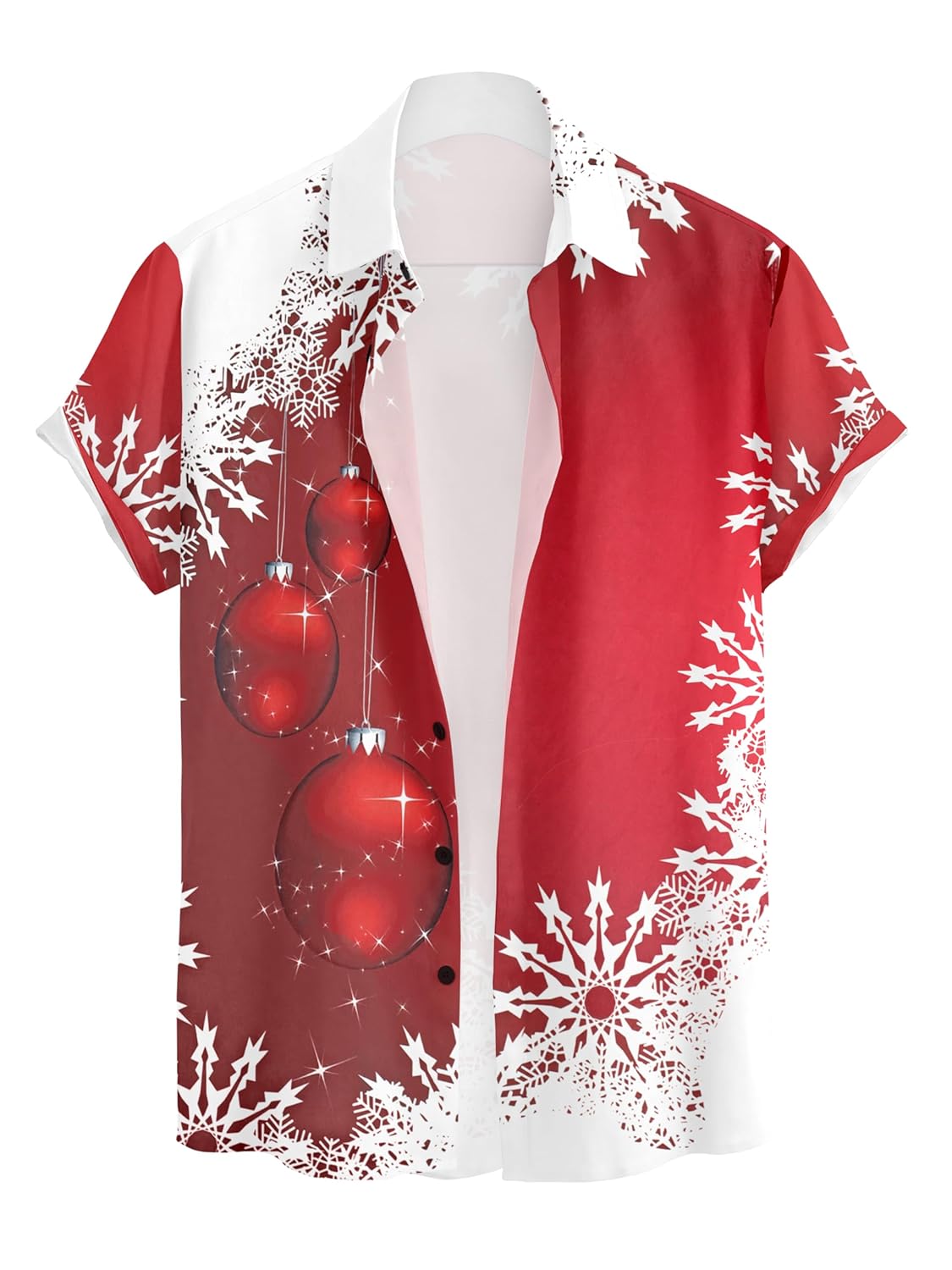 Get into the festive spirit with this vibrant Men’s Christmas Hawaiian Shirt that perfectly blends holiday cheer with tropical style. This eye-catching short sleeve shirt features a stunning red and white colour scheme adorned with sparkling ornament baubles and delicate snowflake patterns that capture the magic of the season. The bold design showcases glittering red Christmas ornaments cascading down one side, whilst intricate white snowflakes frame the shirt with a frosted, wintry elegance. Perfect for Christmas parties, holiday gatherings, or casual festive occasions, this Hawaiian-style shirt offers a relaxed, comfortable fit that keeps you cool whilst looking festive. The short sleeves make it ideal for warmer climates or indoor celebrations, and the unique holiday-themed print ensures you’ll stand out at any seasonal event. Whether you’re attending an ugly Christmas jumper party with a twist, hosting friends and family, or simply want to showcase your holiday enthusiasm in style, this shirt delivers festive flair with a fun, laid-back attitude. Pair it with jeans or chinos for a complete look that’s sure to spread Christmas joy wherever you go.