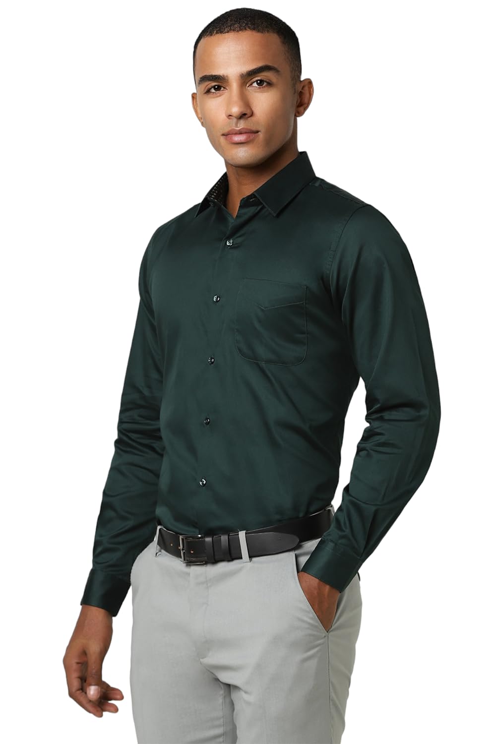 This Peter England formal shirt is a must-have in every men`s wardrobe. Made of comfortable cotton material, this black slim fit shirt is perfect for a formal occasion. The solid pattern emphasizes classiness that suits every event. With full sleeves, you can keep warm and comfortably stylish. Dress to impress effortlessly with this sleek formal shirt.