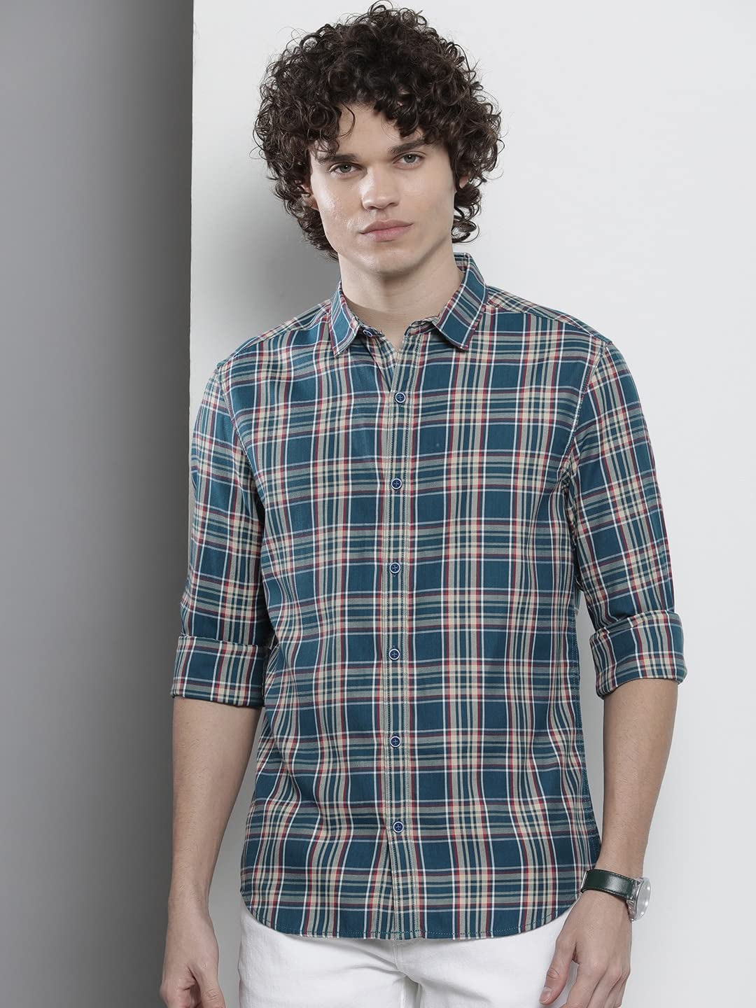 This Cutaway Collar, Slim Fit, Long Sleeves, Blue, Checkered, Premium Cotton Shirt, can be worn on their own or layered with other garments, such as jackets, sweaters or vests. This can be paired with jeans, trousers depending on the occasion and the desired look.